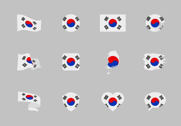 대한민국 국기 플랫 컬렉션 다른 모양의 열두 평면 아이콘의 깃발 대한민국 국기에 대한 스톡 벡터 아트 및 기타 이미지 대한민국 국기 한국 아이콘 Istock