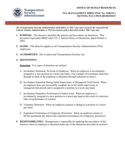 Setting Pay Upon Demotion Transportation Security Administration